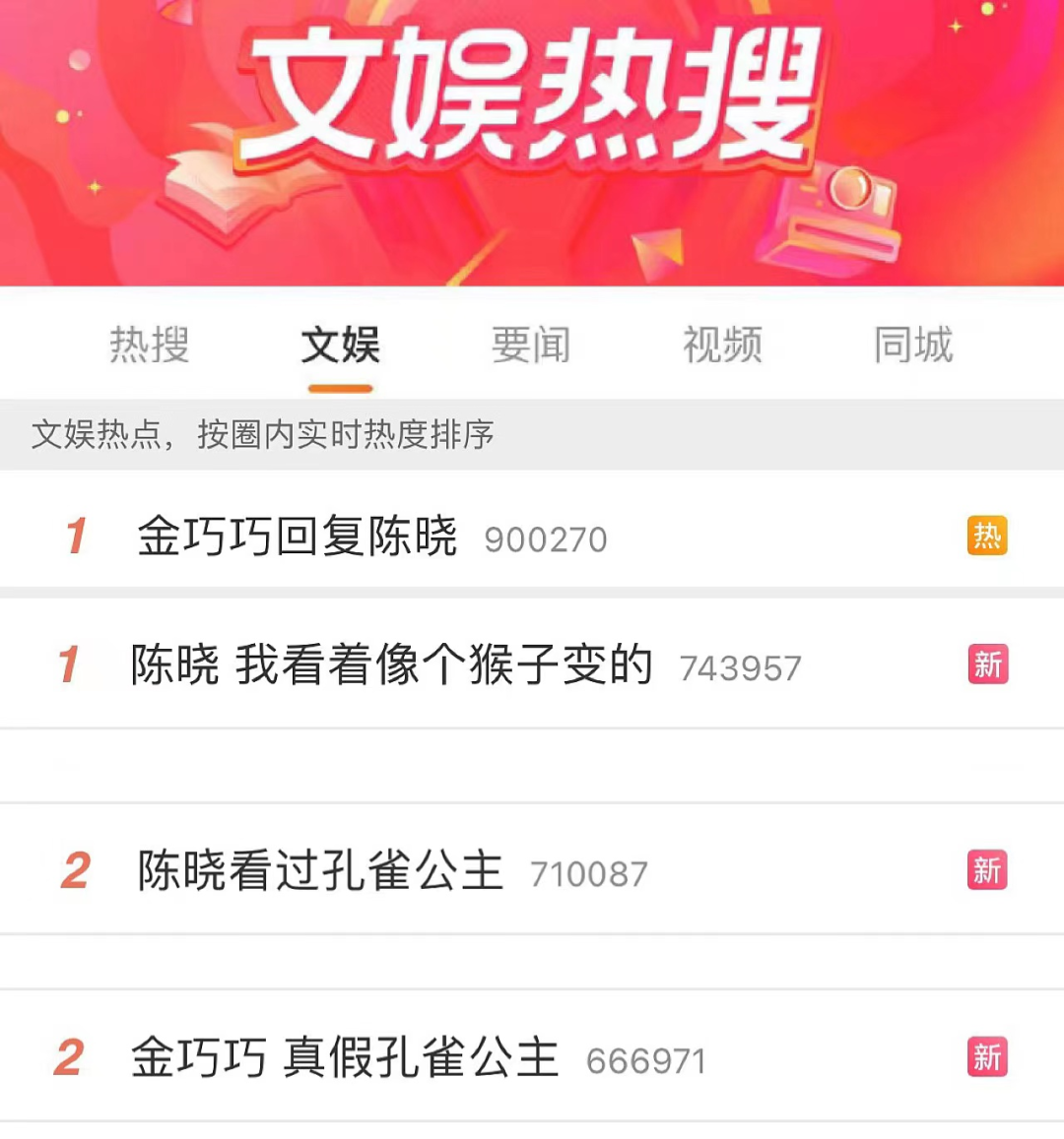 比如今年夏天的《乘风破浪》和《梦华录》,给内娱市场带来了久违的热闹:#王心凌甜心教主#、#金巧巧回复陈晓#登上文娱榜第一,陈晓随后也现身金巧巧评论区留言,#陈晓 我看着像个猴子变的#登上文娱榜第一位。网友辣评:只要我不看评论区,陈晓就不是搞笑男。