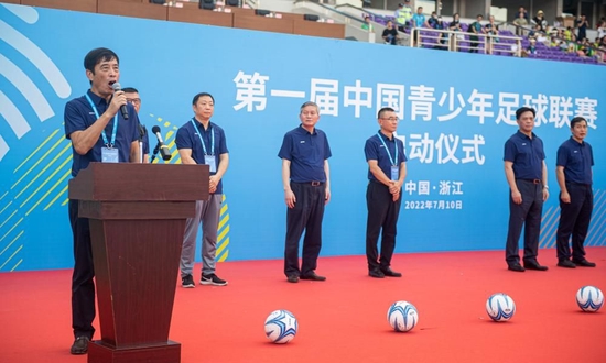 7月10日,第一届中国青少年足球联赛启动仪式在浙江省杭州市黄龙体育中心举行,中国足协主席陈戌源宣布第一届中国青少年足球联赛启动,台上嘉宾共同为比赛开球,第一届中国青少年足球联赛拉开帷幕。